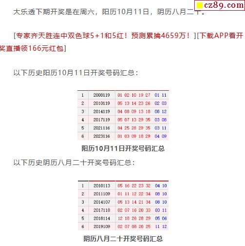 历史上的今天大乐透10月11日开奖号码汇总
